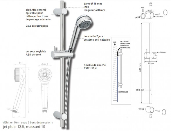 Handbrause mit 2 Strahlarten Valentin.Cobra 2 Brausestangenset, mit Handbrause mit 2 Strahlarten, Stange und Schlauch, verchromt Artikelnummer 97600000000.
