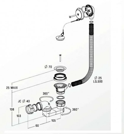 Verstellbarer Badewannenablauf NICOLL SAS204 Verstellbarer Badewannenablauf mit horizontalem 40 mm Abfluss, ausgestattet mit einem Revisionsdeckel für eine einfache Wartung. Entspricht der Norm NF EN 274 für optimale Sicherheit. Ideal für eine effiziente Installation und einen sorgenfreien Wasserablauf.