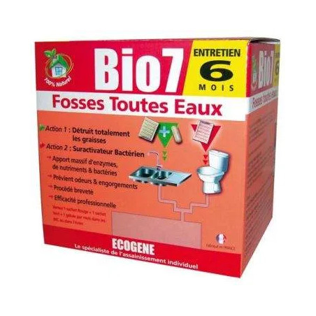 Adecuado para todo tipo de fosas sépticas, destruye la grasa, fuente de atascos, licua los residuos y facilita la depuración, reduciendo el número de veces que hay que vaciar la fosa.