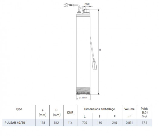 Pompe centrifuge immergée 5" PULSAR 40/50 M pour puits profonds ou citernes JETLY référence 150574