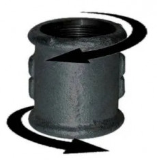 Manicotto in ghisa malleabile nera, avvitamento a destra/sinistra